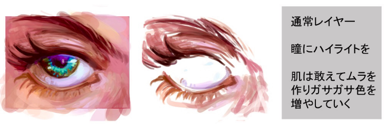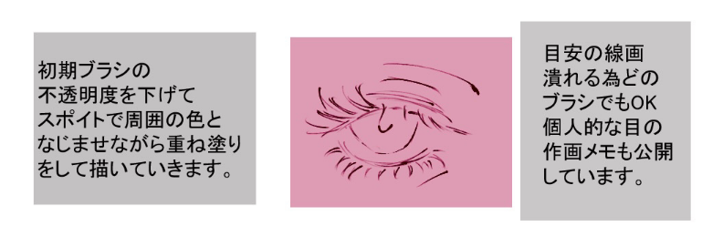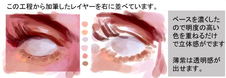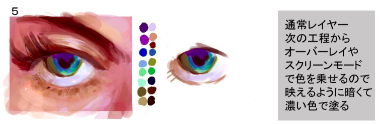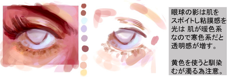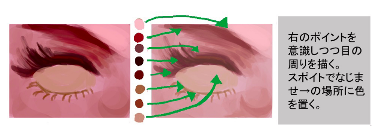 一边注意右边的要点一边画眼睛周围。不习惯于取色器-将颜色放置在。