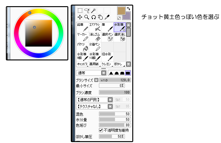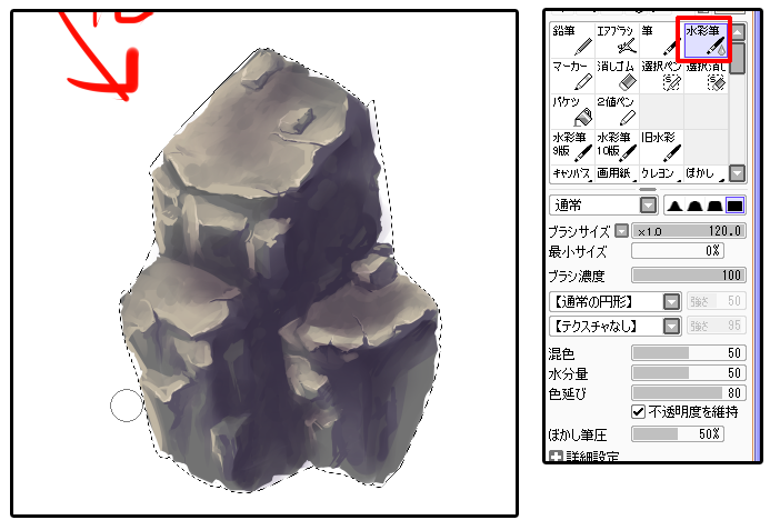 SAI的标记可以混合底色和现在选择的颜色,给人一种很好的感觉,所以推荐使用具有良好氛围的厚涂风格。