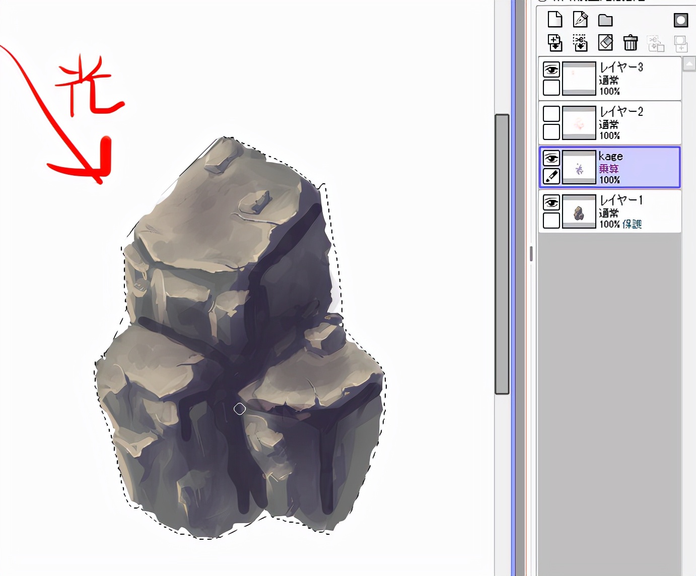 制作新图层后,用铅笔画出作为乘法最想刻阴影的地方