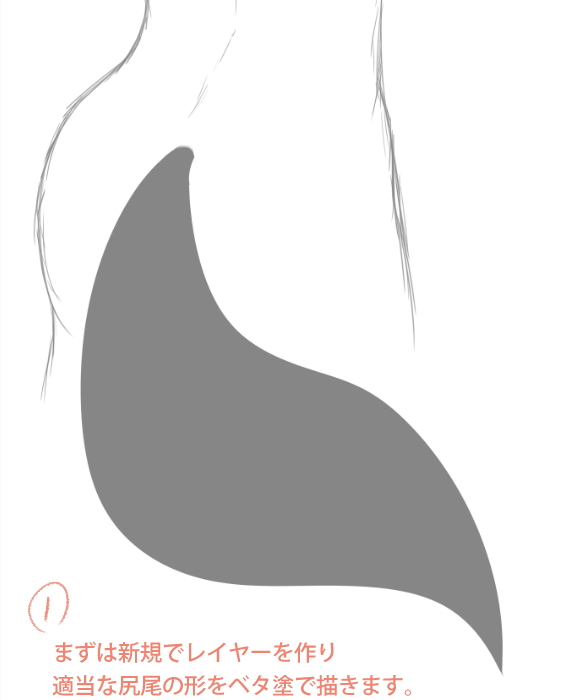 1.首先新建一个图层,画出适当的尾巴形状。为了让明暗明显用了两种颜色。