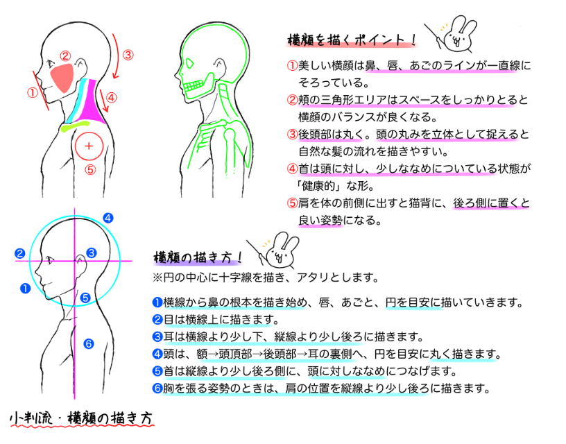 后脑勺是圆的。 将头部的圆度作为立体来捕捉的话,容易描绘自然的头发流动。
