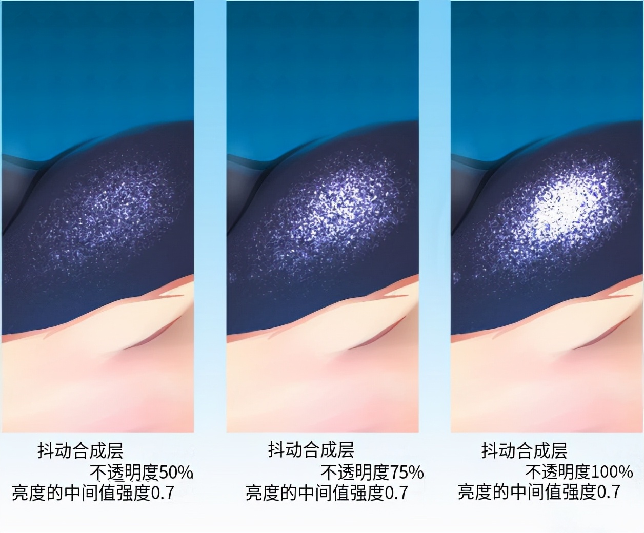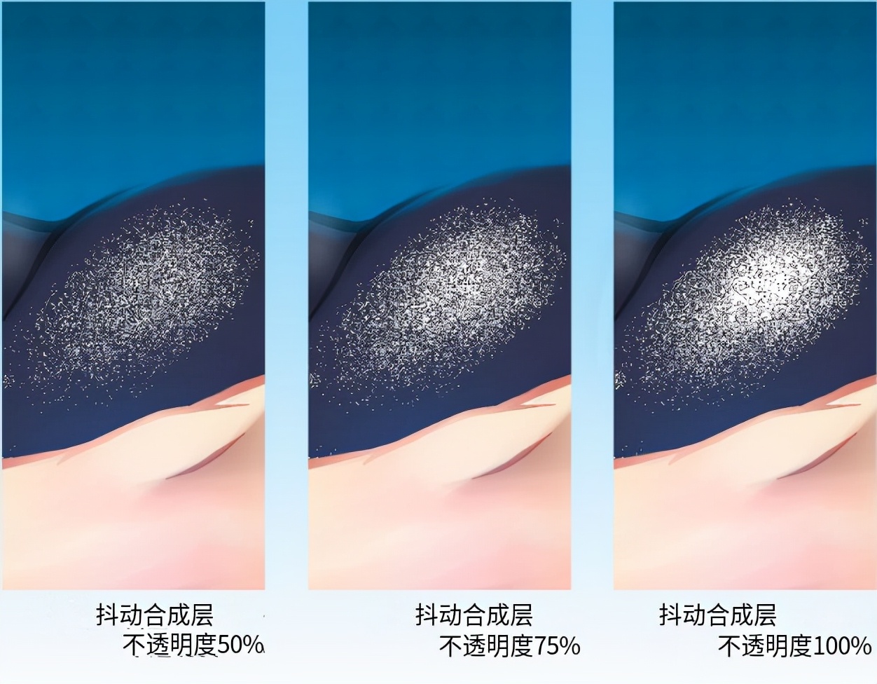 2、将高光的层模式更改为“抖动合成”,并将不透明度调整为50%%~100%然后在这个层下面制作新的层,将两个层匹配