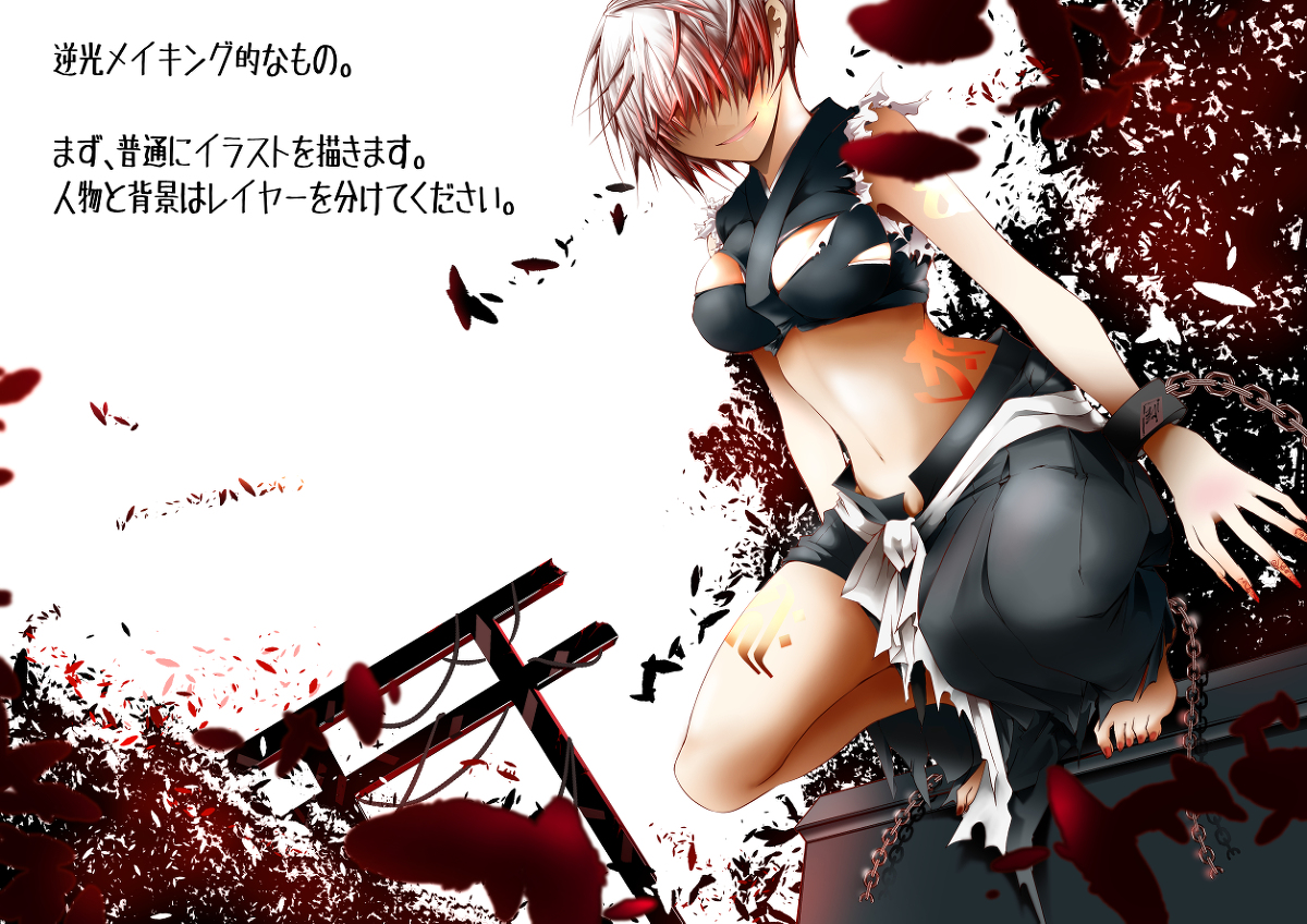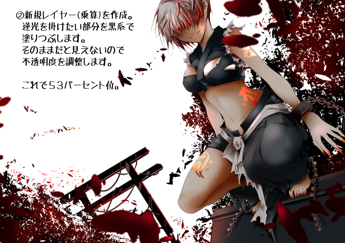 逆光上色的素材。首先,普通地画插图。人物和背景请划分层。