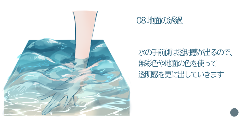 因为在水的跟前侧会出现透明感,所以使用无彩色和地面的颜色来进一步展现透明感