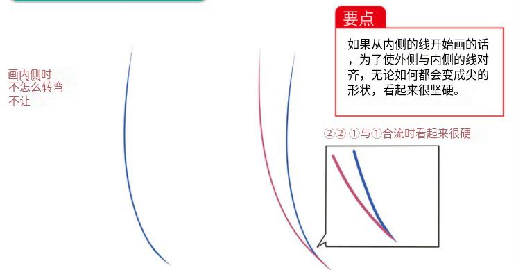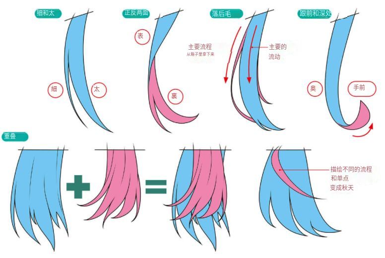 发束大致上可以通过“细•粗”“表•里”后面的毛”“前•里”“重叠”等更立体地表现出来。