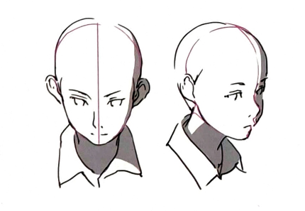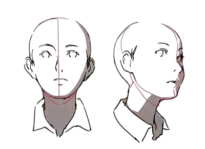 那么今天将要解说不同角度下脸部的形状以及绘画的方法。注意当角度变换时,脸部各个部位的位置也会发生改变。此外在实际绘画中,应当先画出中心线。