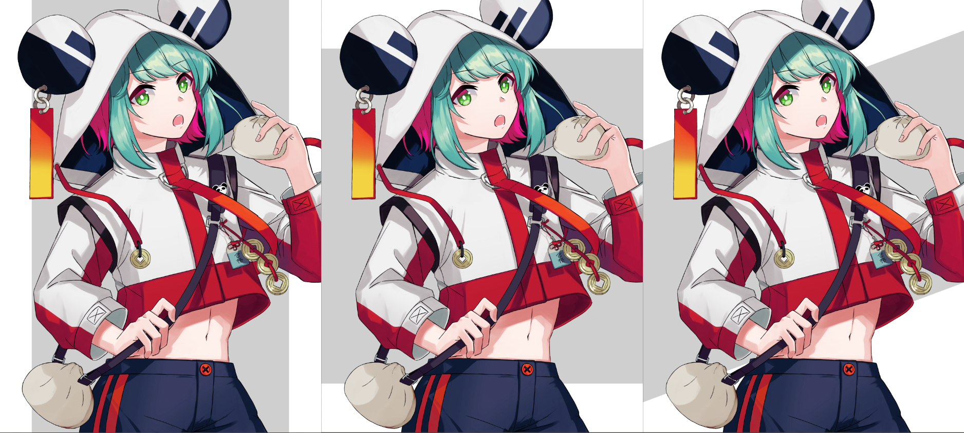 如果是长方形简单的灰色配色的话,像这次这样有精神感的角色,会让人觉得有点不足吧。