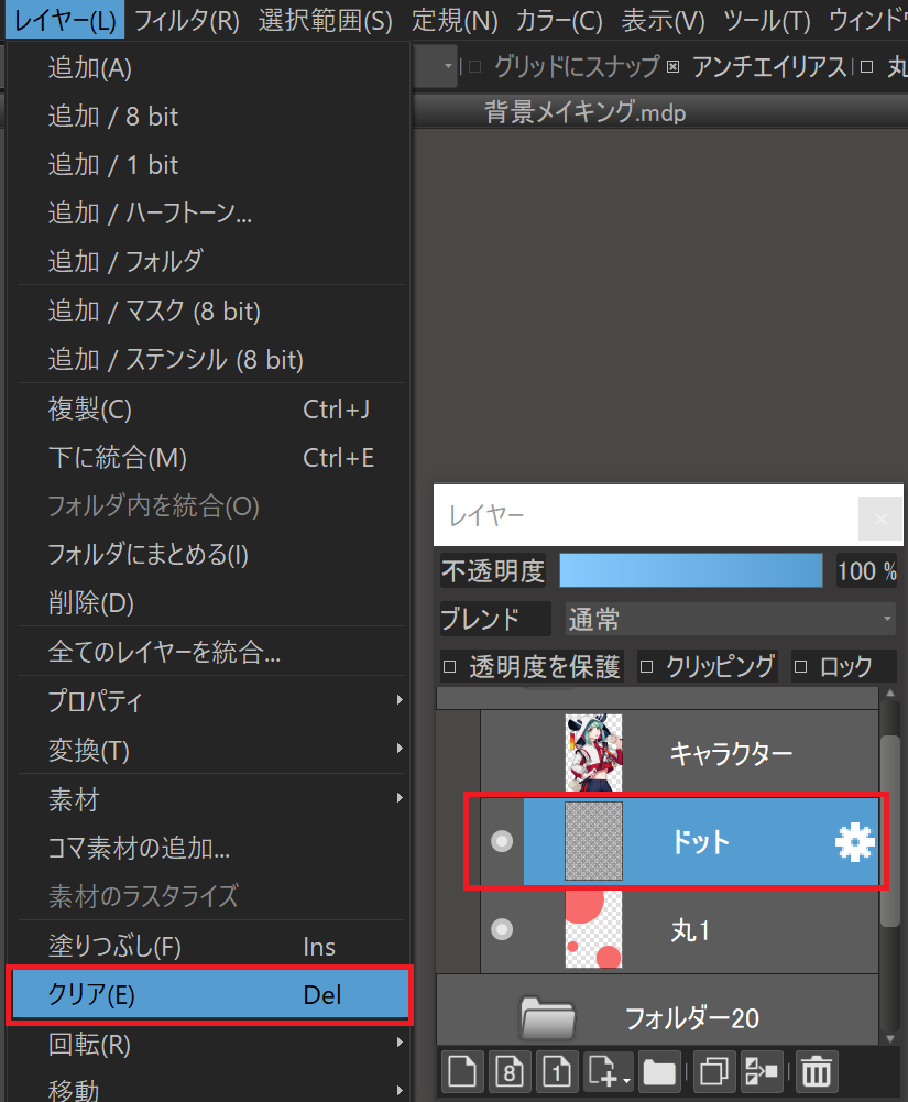 选择要裁剪圆的点图层,然后从图层图层中选择“清除”。