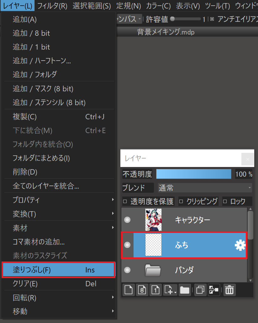 我很在意角色和背景的熊猫线,所以我想在角色周围放一条白色的脚踏车。