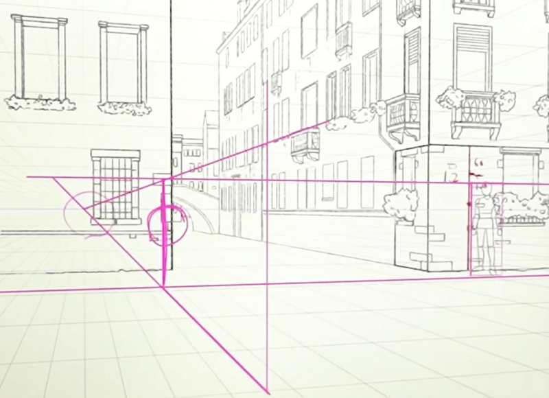 将透视从插图深处的消失点拉到“向左移动的侧面”。