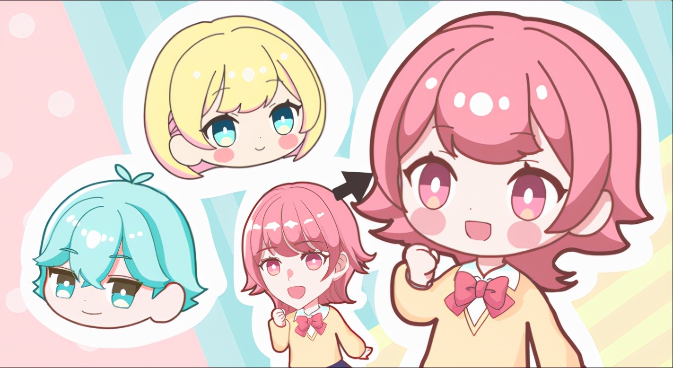 整体上被简约变形的矮小角色,头发也会减少画进去,表现得很简单。