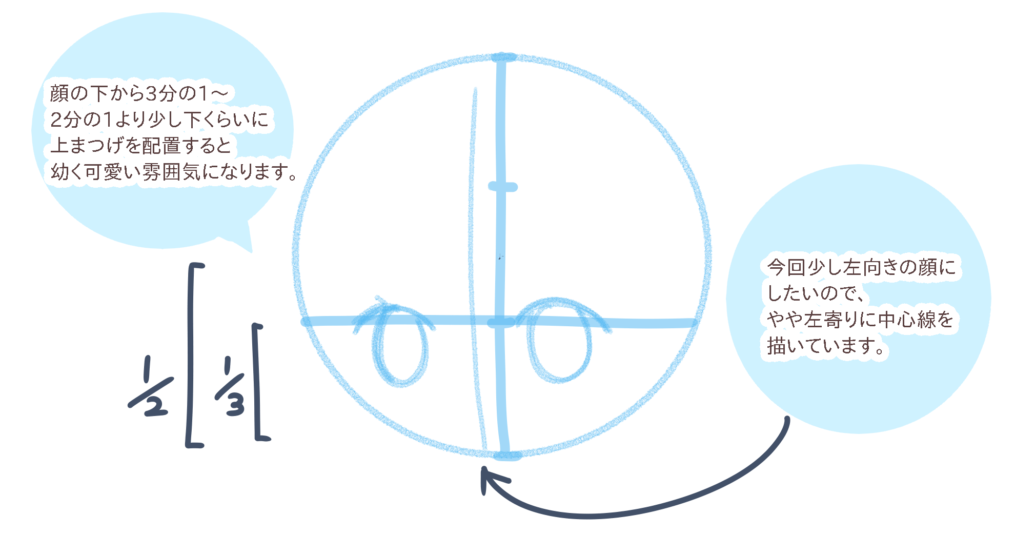 这次想给人一种可爱的感觉,所以在三分之一左右画了十字线。