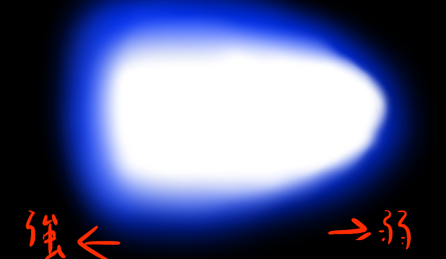 3、让我们创建一个新层,并将其移动到底部。使用喷笔(柔软),按照包围周围的方式进行涂抹。这次用蓝色啊。 这边也注意强弱进行涂抹吧。