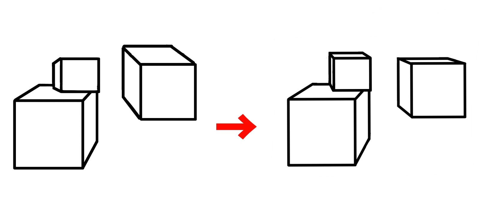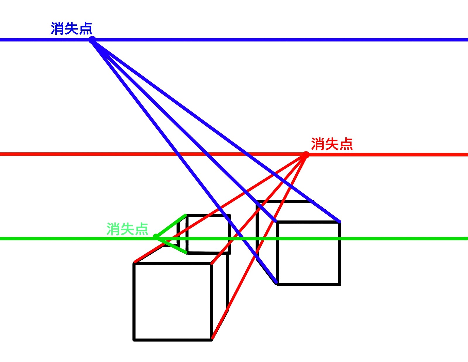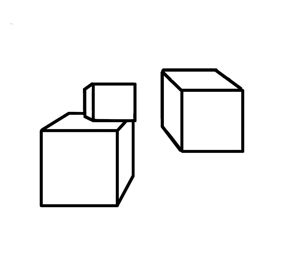 为了使其成为自然的立方体,最好将眼级缩小为一个,并将所有立方体的消失点与眼级匹配。