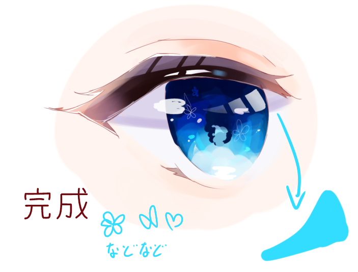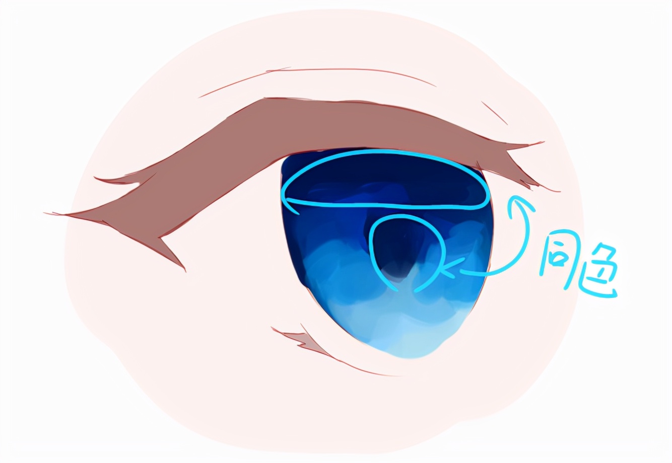 瞳孔等;画瞳孔,瞳孔用同样的颜色涂抹上面的部分。 另外,一边使用吸管工具一边上色。