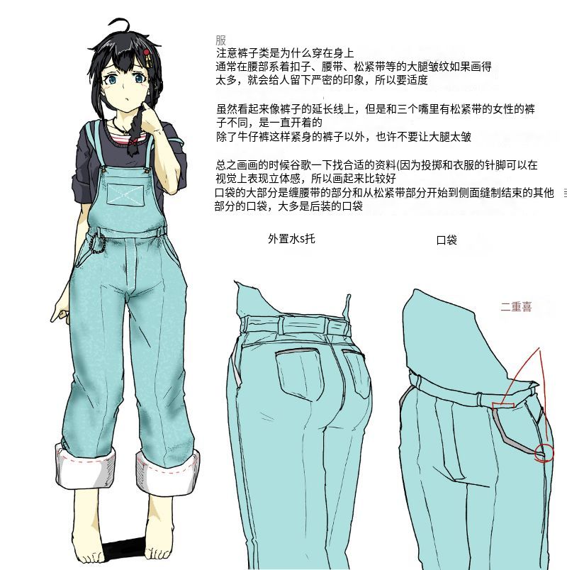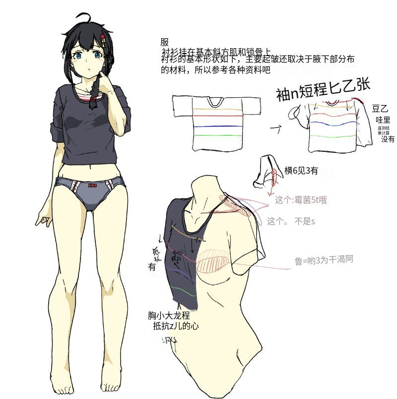粗略地描绘身体的结构。总之先画一张脸,看其平衡,然后再画身体注意骨骼(特别是锁骨和髂骨) 即使是纤瘦的人也不会比蓝骨头的部分瘦意识到露出身体形状的肌肉 (首先是上边列举的)