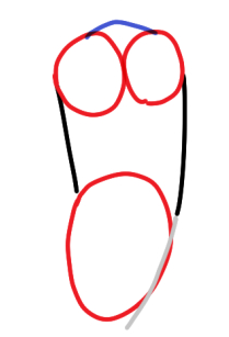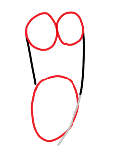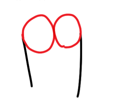 3.倒八字的右侧向下延长,沿着那里画棛圆