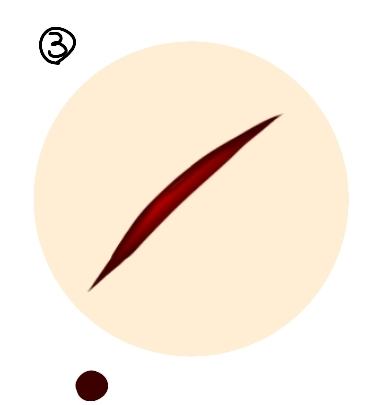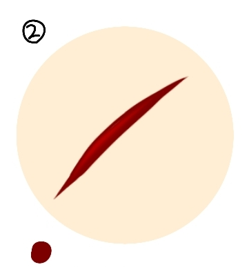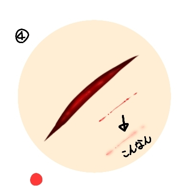 4.在上面用橡皮擦在伤口中央涂上明亮的红色后再模糊