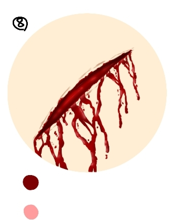 7.在的血层上再加一层,描绘从伤口滴下来的血。不是一直滴下来,而是扑通一声扑通扑通扑通扑通扑通扑通一声,很容易让皮肤看起来像是滴下来的