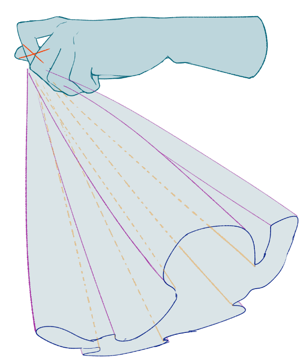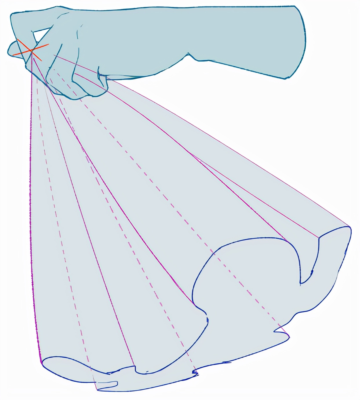 3.接着配合褶边的流动画出弯曲的形状。流动性越大褶边的宽度也越大。