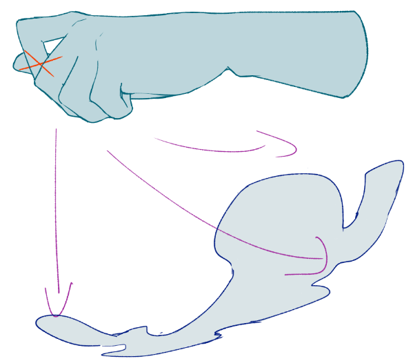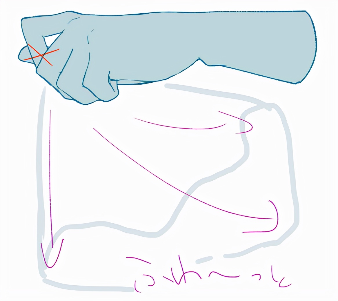 2.接着决定褶边的终点,成为皱纹的原来的部分。并且,褶边的流动也在这个时候决定吧。大概是想扩展到什么样的感觉。