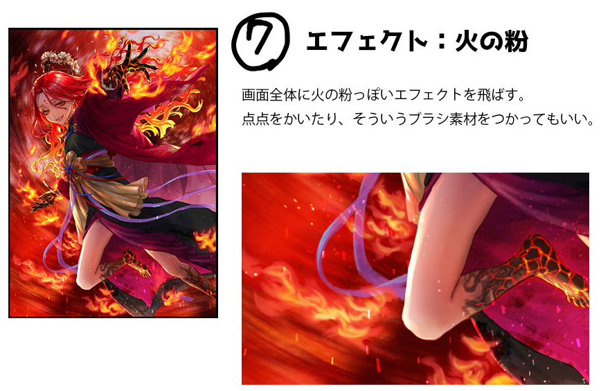 在整个画面上展现出火星般的效果。画个点,用那样的刷子素材也可以。