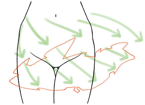 皱纹会随着身体的活动而发生接点的变化。让我们一边穿着衣服活动身体,一边自己活动观察触点发生在哪里。