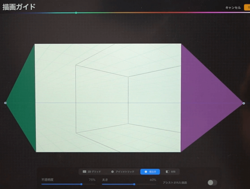 该网格从Procreate的“动作按钮”中打开“绘制向导”,然后选择新建图层的“绘制辅助”即可绘制。