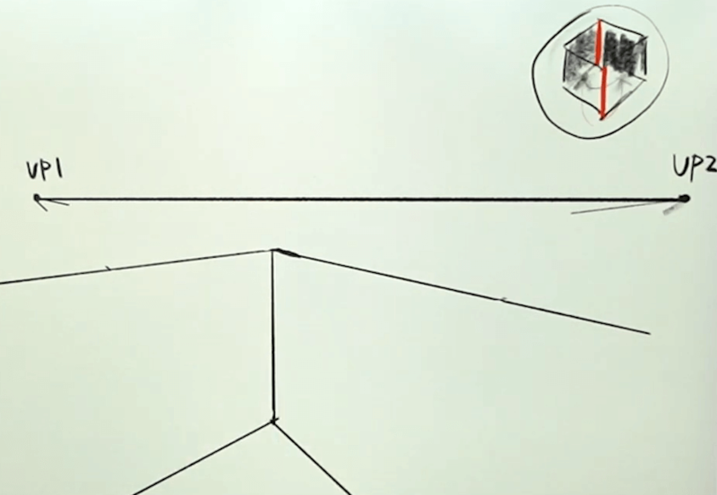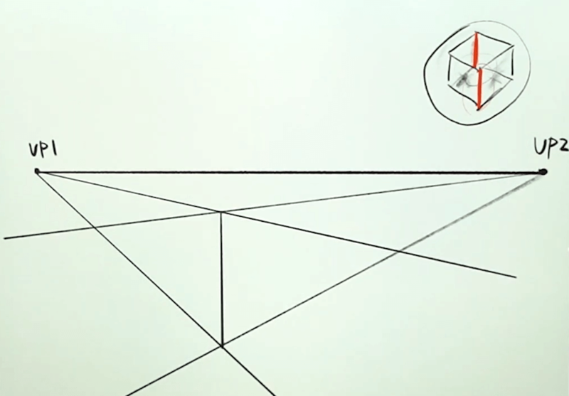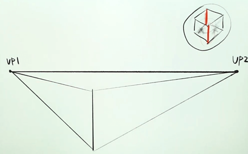 两点透视是有两个消失点的技法。让我们想象一个方形的盒子,在前面有一个角落。