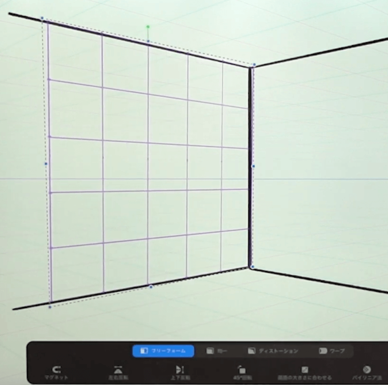 通过在工具栏中选择“变形按钮”→“失真”,您可以将网格变形为与墙形状相同。