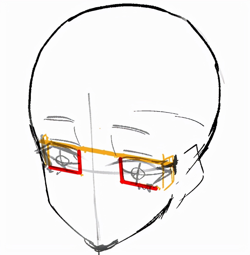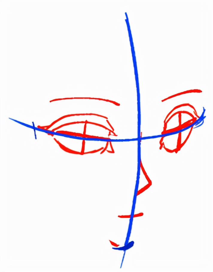 特别是旁边辅助线的意思是“与双眼的眼角相接触的弧线”,所以从眼角的位置开始画出笔直追加的横线,把眼角往里缩进去比较好