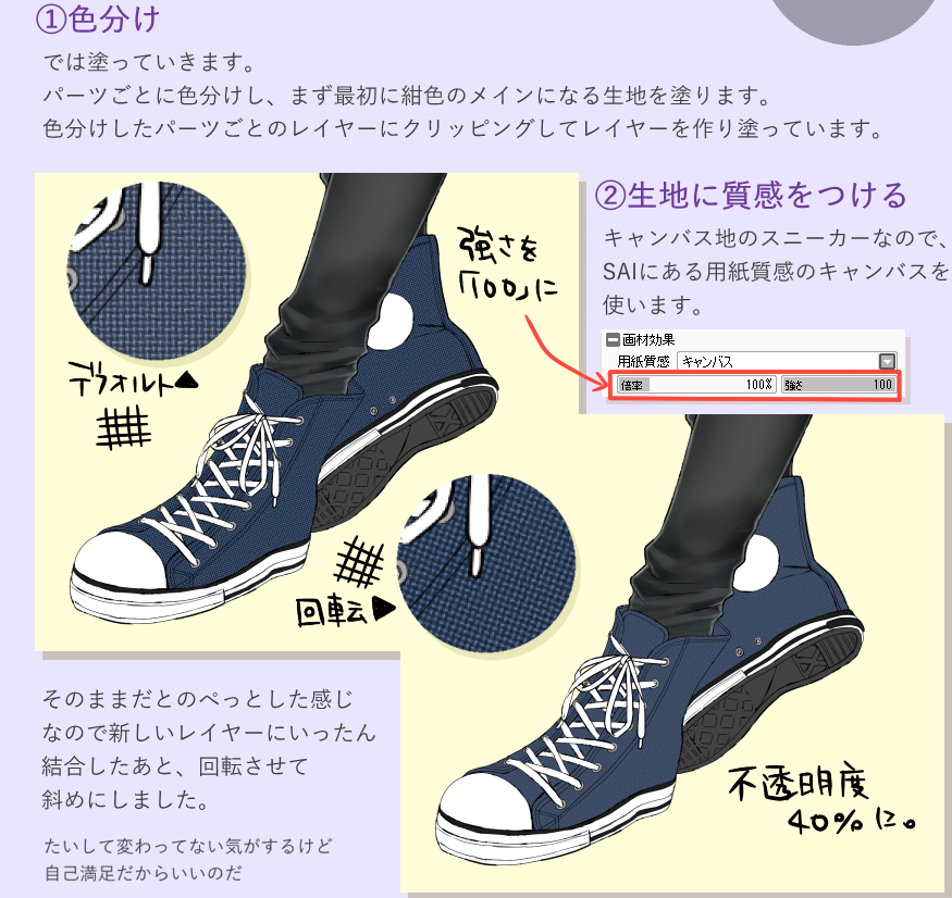 因为是帆布地的运动鞋,所以使用SAI的用纸质感的帆布。