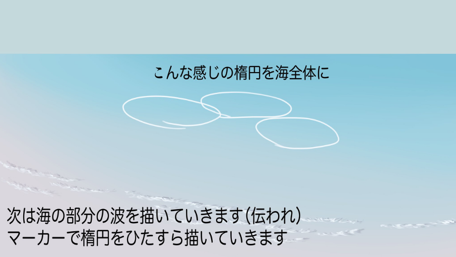 接下来画海的部分的波浪(传达)用记号一个劲地画椭圆