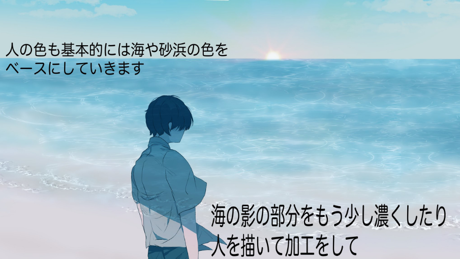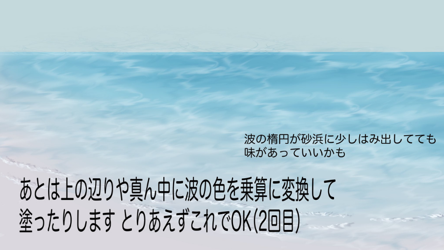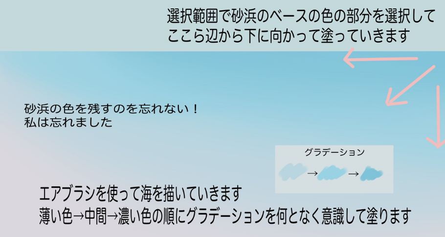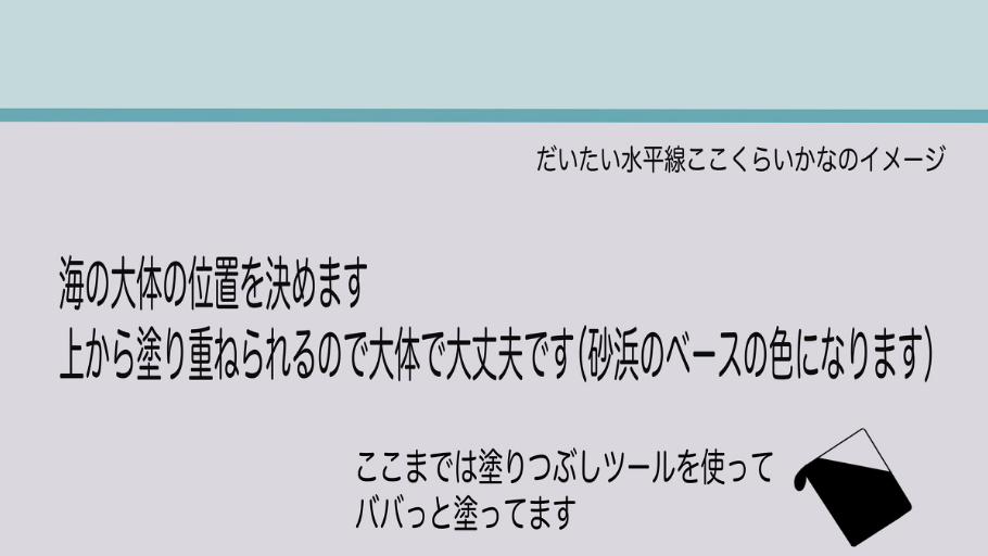 决定大海的大致位置因为可以从上面重复涂抹,所以大体上没有问题(变成沙滩底色)