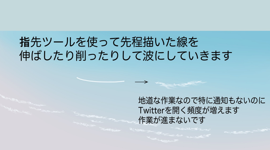 使用钢笔工具的标记描绘想弄成波浪的部分。不是笔直的,而是有点弯曲的感觉