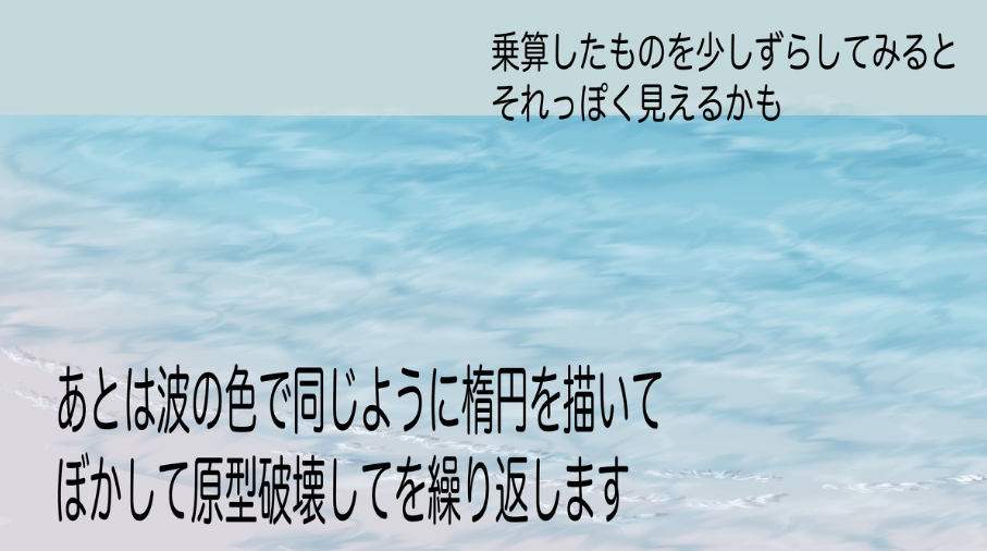 之后用波浪的颜色同样画棛圆模糊原型破坏,重复这样的动作