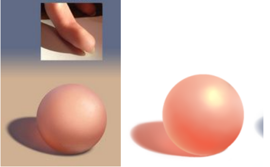 所以人的皮肤也会有高光点不会太明显,反光会给人一种透亮的感觉,暗部不明显。