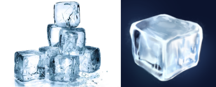 画的时候可以有一点融化的感觉,用浅色的蓝在里面画一个小的正方形。再外轮廓边缘加上白色的块面让结冰的感觉更加明显一点 底部需要有透亮的感觉。