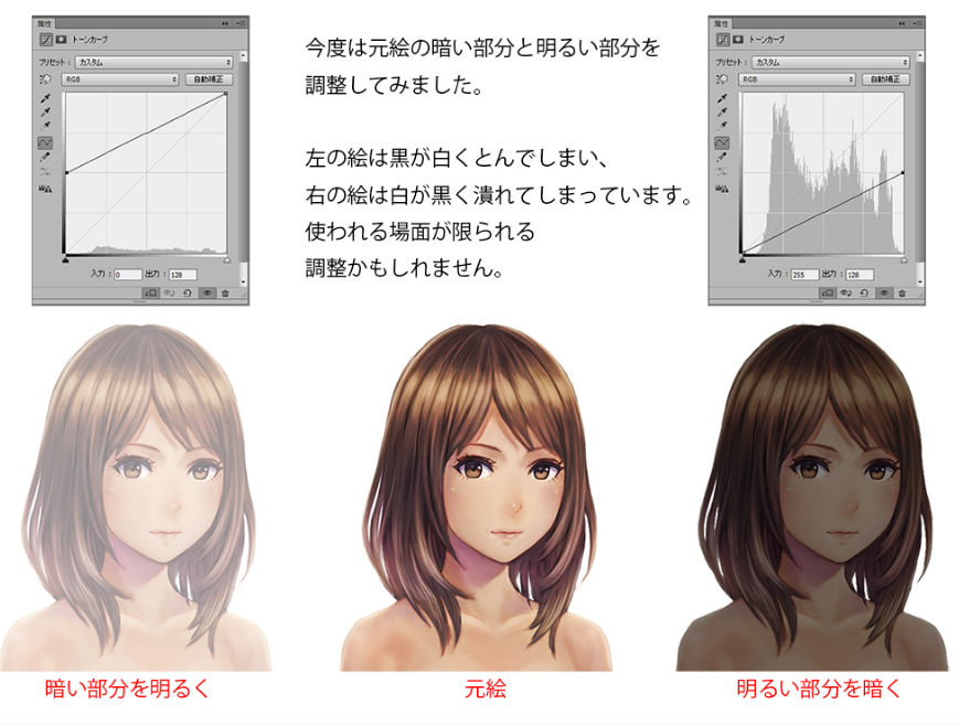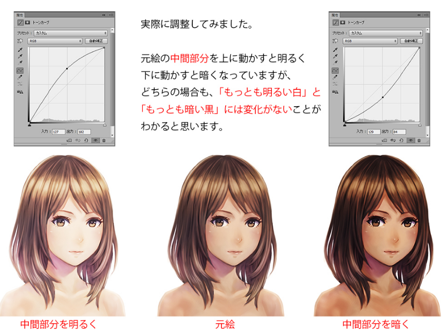 如果将原画的中间部分向上移动,则亮向下移动会变暗,但在这两种情况下,“最亮的白”和“最暗的黑”都没有变化。