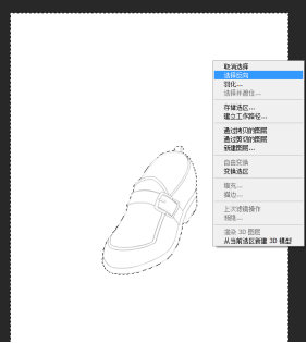 在线稿有了之后,我们可以利用魔棒工具(该闭合的地方要闭合好哦)点击外面空白的地方 然后右键反选,就可以选到我们的鞋子,在线稿下面新建个图层填充当做底色!