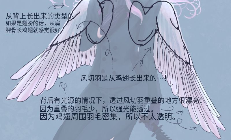 如果是背上长的翅膀的话,从肩胛骨上长出鸡翅会比较好