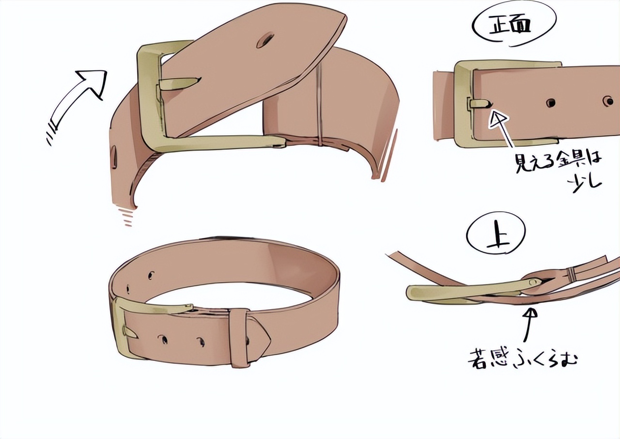 ·从上面看的时候,腰带的跟前会稍微鼓起