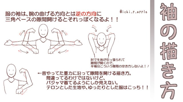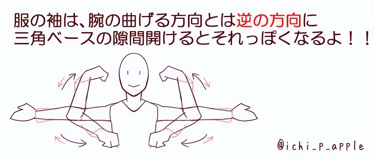 如果你在与手臂弯曲方向相反的方向在三角形底座上留一个空隙,衣服的袖子就会看起来像这样。