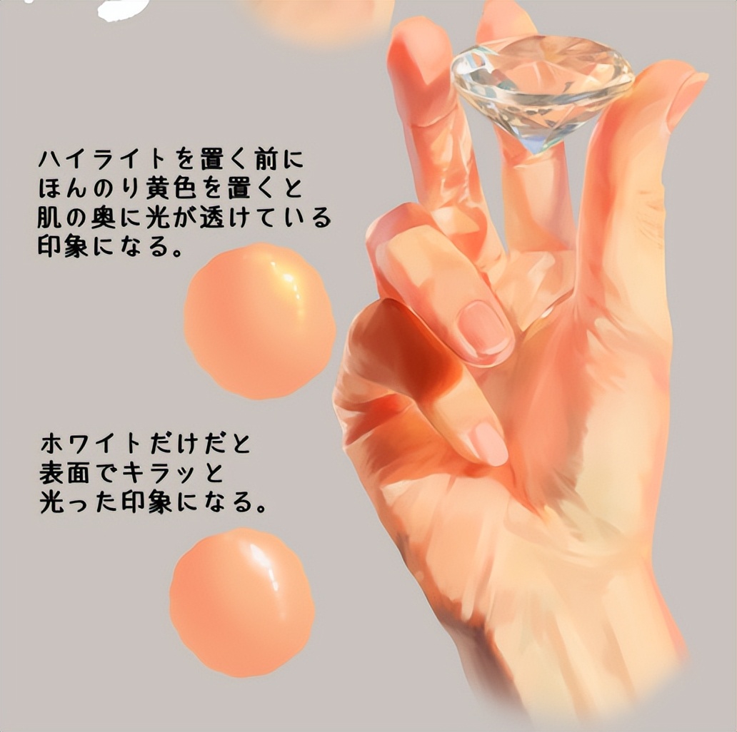 如果你在放高光之前先放一点黄色,你会得到光在皮肤后面是透明的印象。