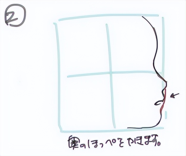 (4)用比中心线和里面额头的宽度稍宽的宽度,错开耳朵进行描绘。