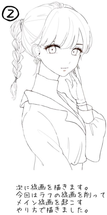 用已完成的图纸的图像绘制草稿。用手的动作展现出华丽的女性魅力。