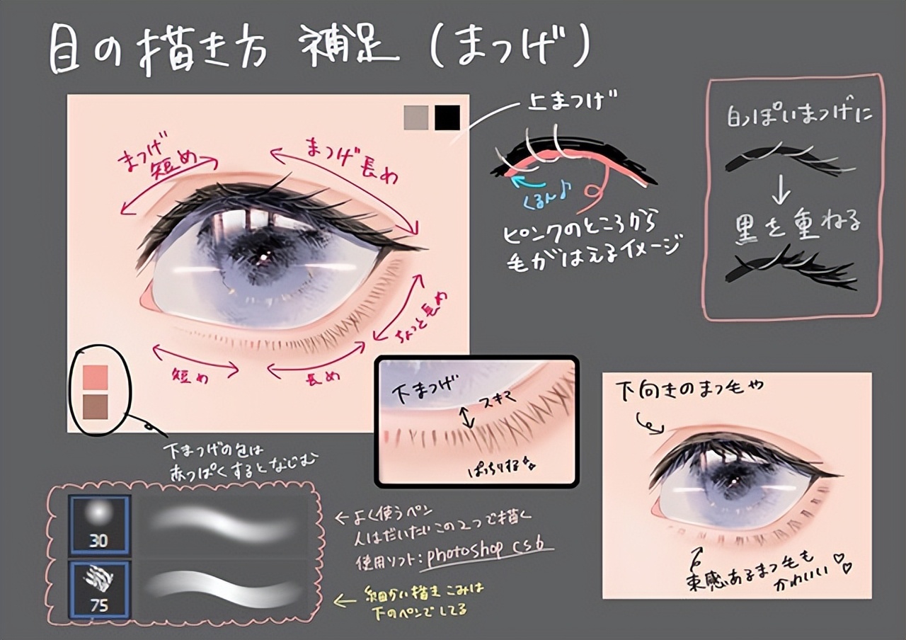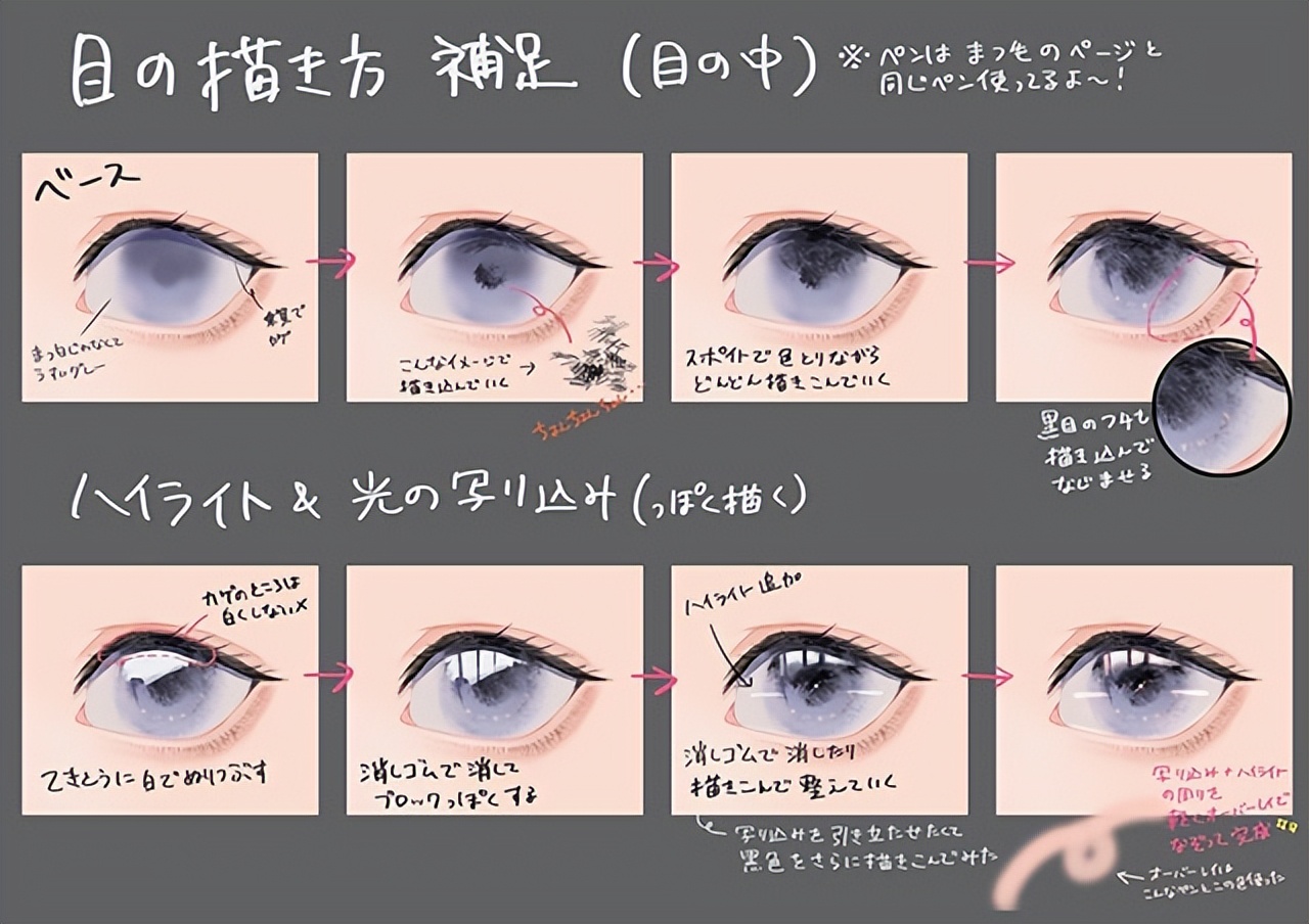 从这里开始,作为眼画制作的补充,我们将介绍更详细的眼画法、画法、高光法