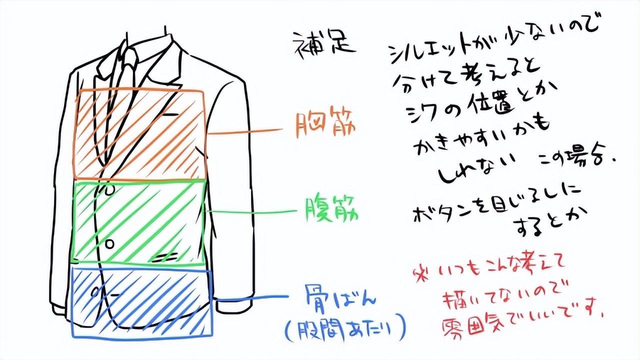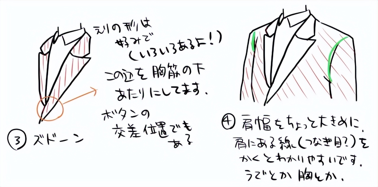据说把肩宽稍微加大一点,画出肩膀上的线就很容易理解了。