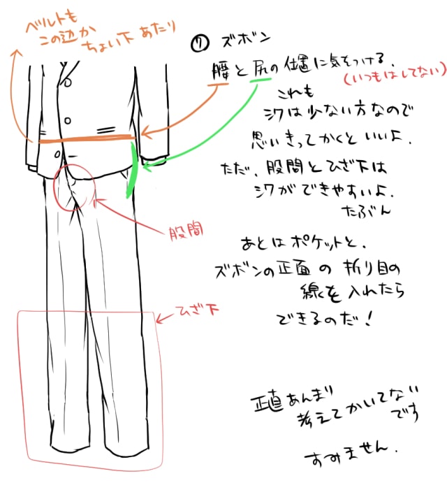 不怎么画皱纹,只需在腰和关节上画一点就可以了。