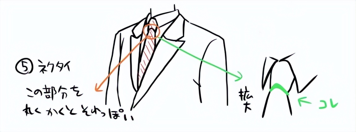 把解说插图中显示的领带的地方画得圆圆的话,就差不多了。